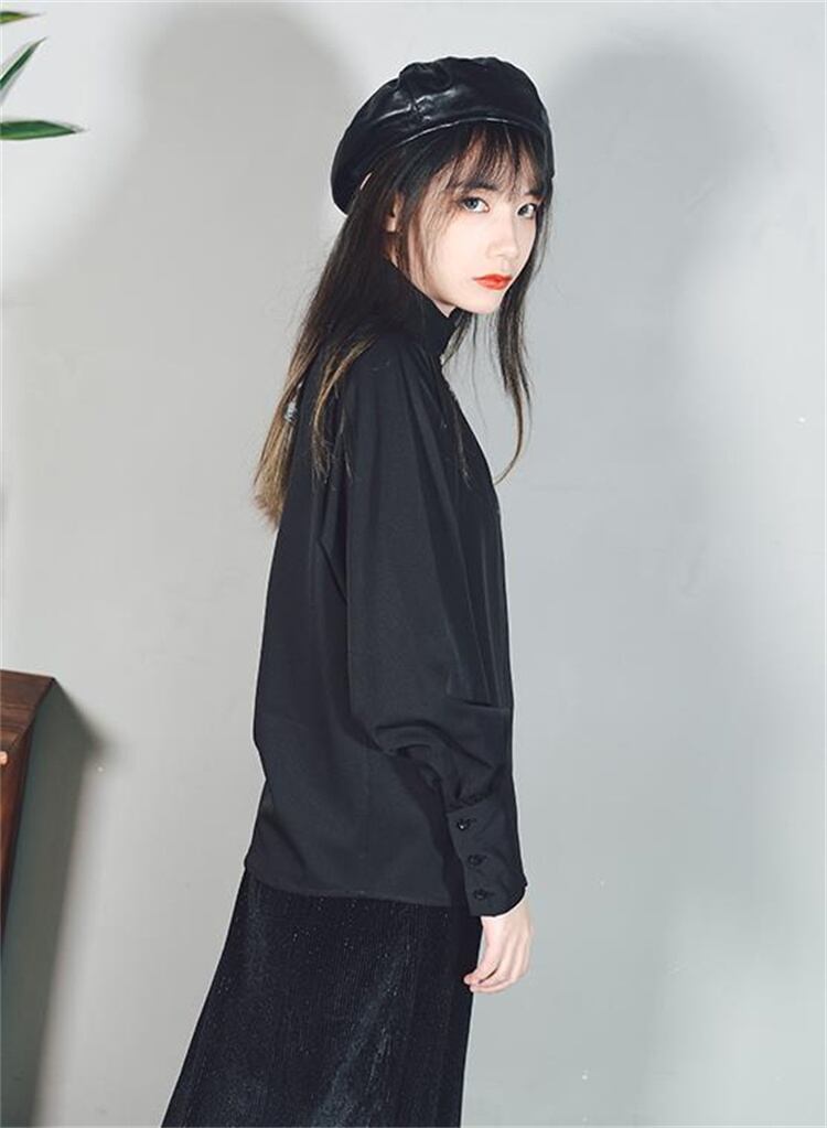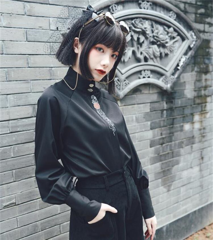 チャイニーズでリブが特徴的なシャツ。シンプルなコーディネートもこれ1つで変わったスタイルに。